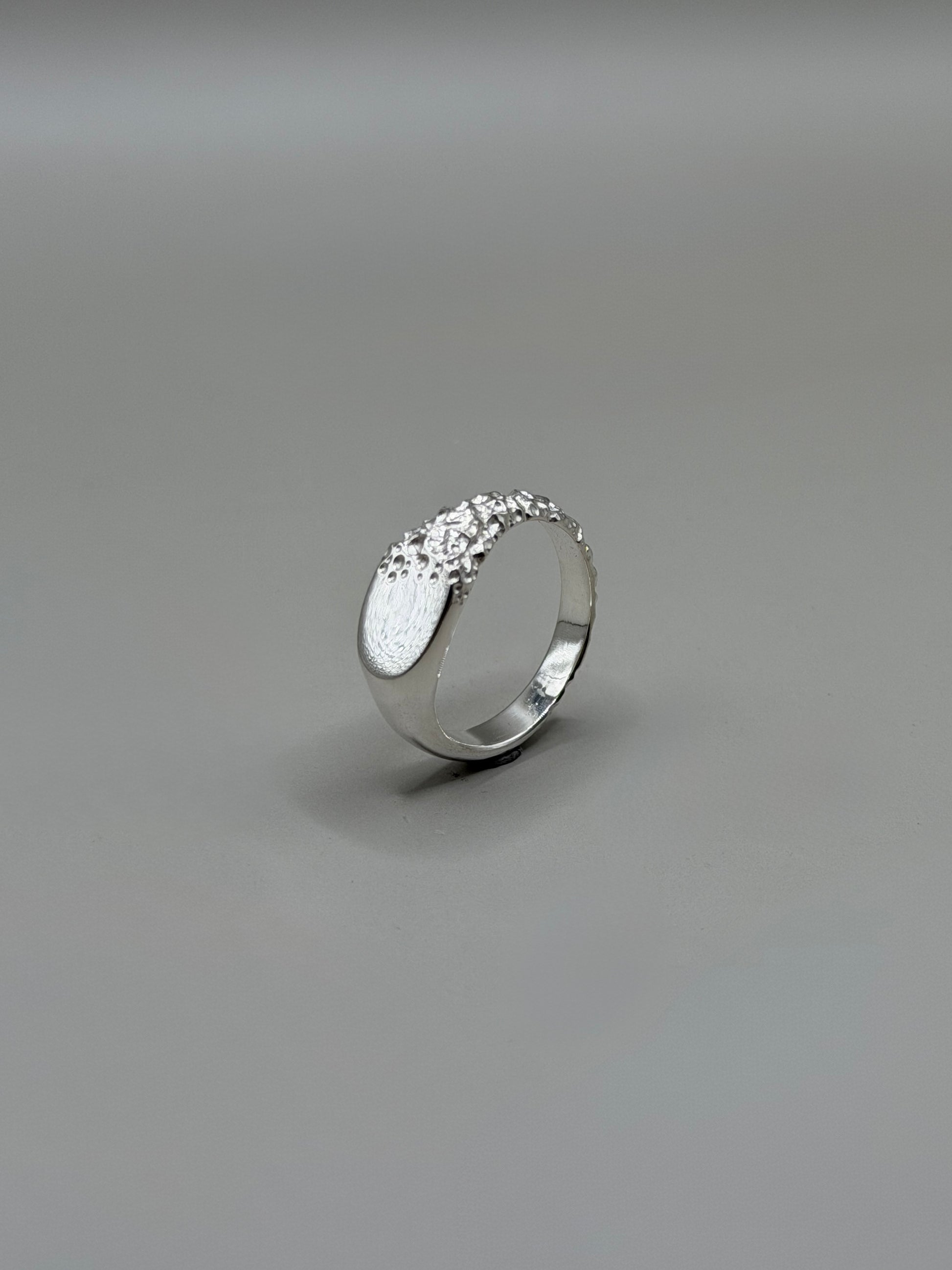 This ring is not cast like this. Each texture is handcrafted using a variety of tools - steel punches, rotary bits, burrs, and more. I take care to ensure every piece is unique, making yours truly one of a kind.